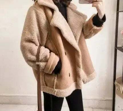 Lovemi - Stílusos bárány gyapjú splicing kabát nőknek