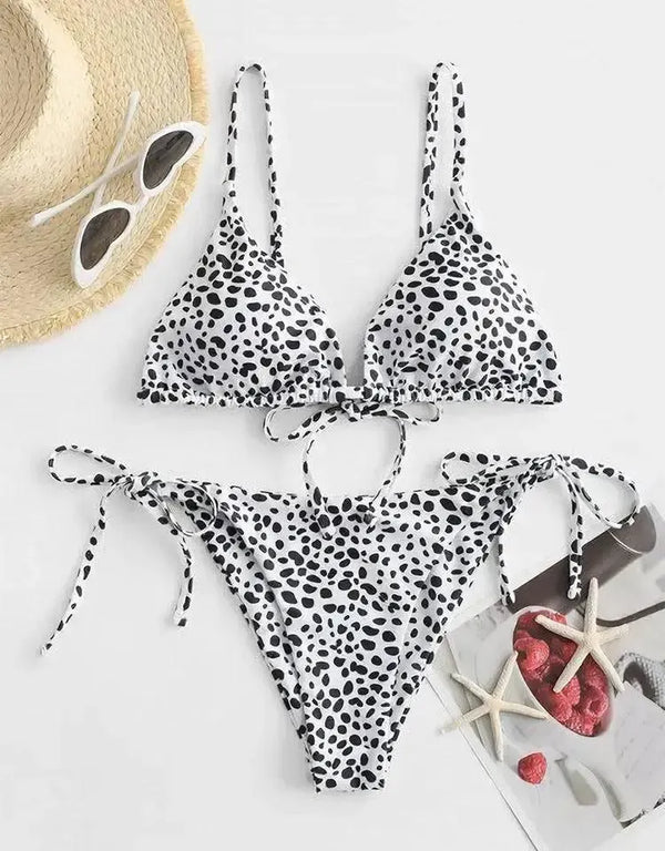 Bikini osztott fürdőruha kétoldalas leopárd kígyóbőr mintával