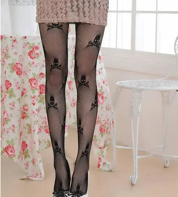 Fekete csipke koponya harisnya