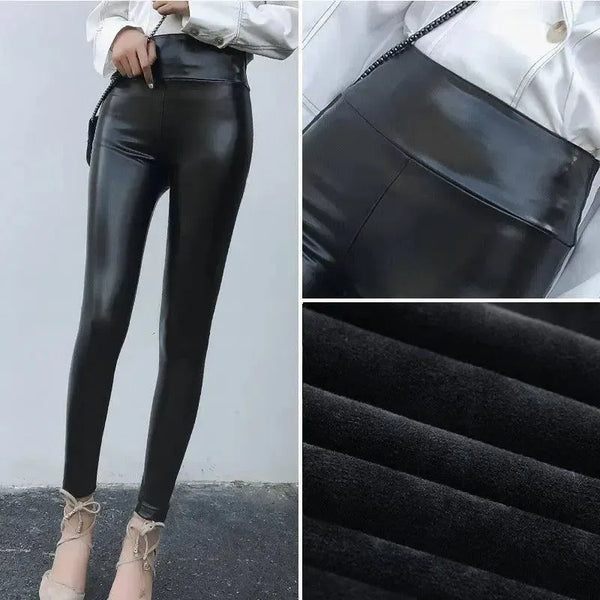 Bőr nadrág női vastag nagy méretű nagy derék PU bőr