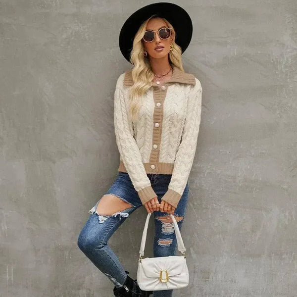 Divat Rövid hajtókás kötött kardigán Egyberészes pulóver