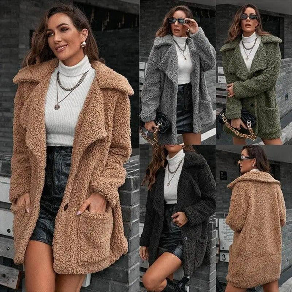 Egymellényes buborék Fleece kabát Laza hajtókás bárány fleece