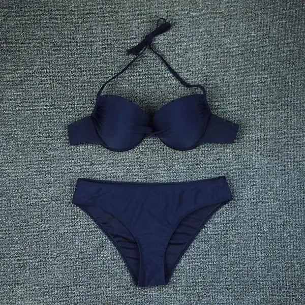 Termékleírás: Egyszínű kemény táska hát nélküli bikini fürdőruha nőknek