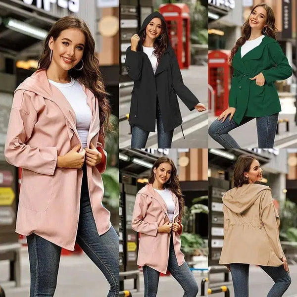 Egyszínű, középhosszú, kapucnis, egyszínű trencsén kabát
