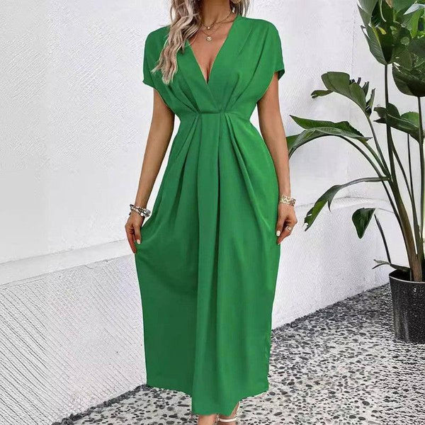 Szilárd színű mély V váll ujja összecsukható rugalmas derékkal