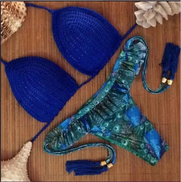 Európai és amerikai kötött bikini csipke virág nyomtatás Split