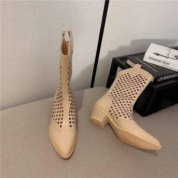 Pontozott nyugati cowboy csizma nők vékony üreges lovag vastag
