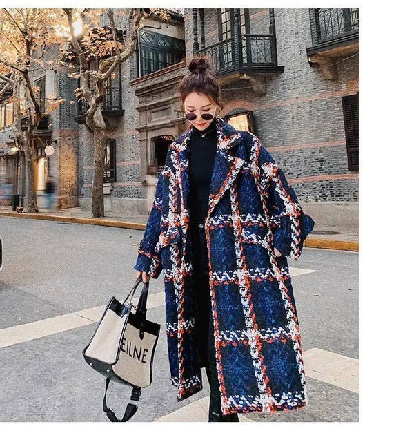 Kontrasztos kockás temperamentum öltöny gallér laza egyenes
