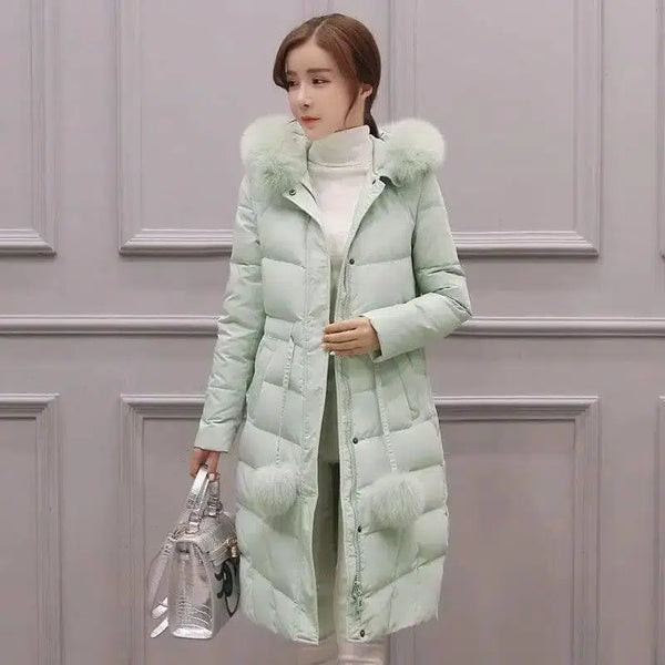 Koreai lefelé pamut párnázott női kabát a térd fölé