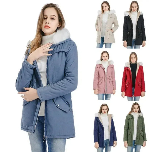Közepes hosszúságú kabát nagy szőrme gallérral