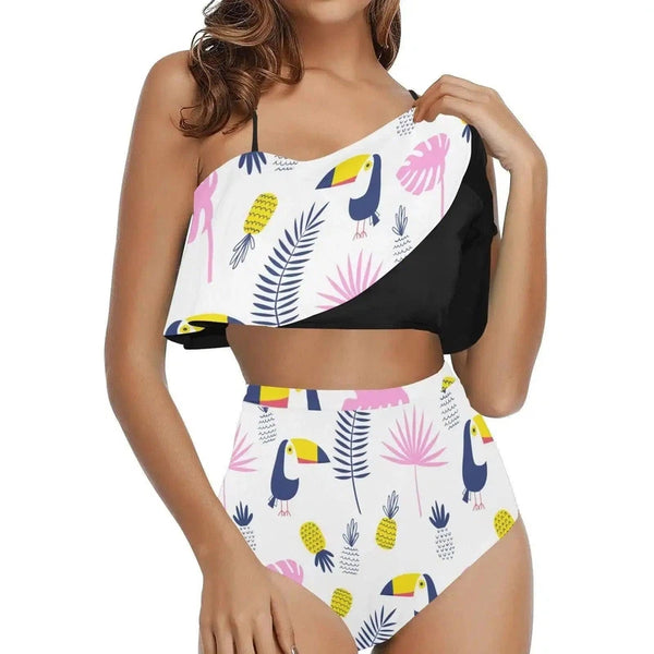 99DIY Női kétrészes, magas derekú, fodros, fodros bikinis fodros bikinik