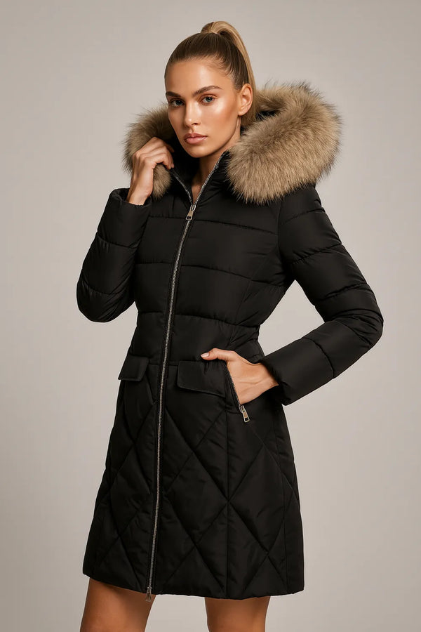 - Nyakvonal/vállvonal stílus: Kapucnis, műszőrme szegéllyel