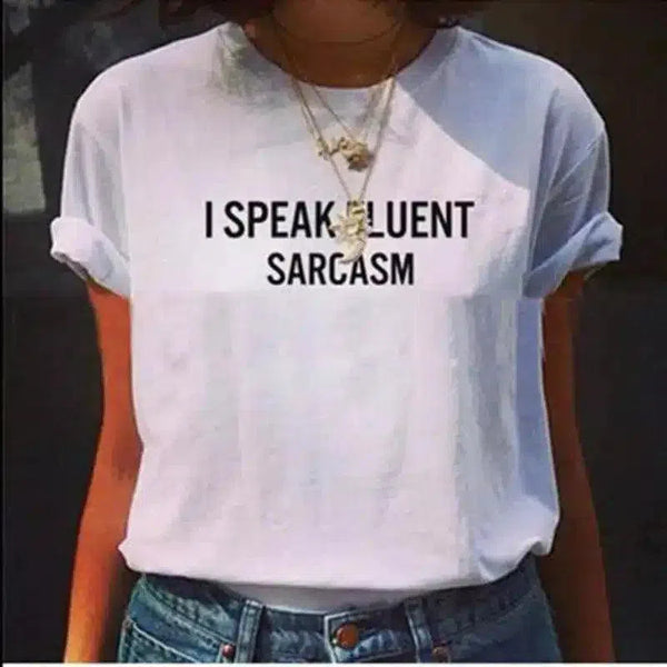 Boldog kijelentő nyomtatás: Jelentkezzen a játékos "I SPEAK FLUENT SARCASM" nyomtatással, amely beszélgetésindító és szellemes személyiségének bemutatója.