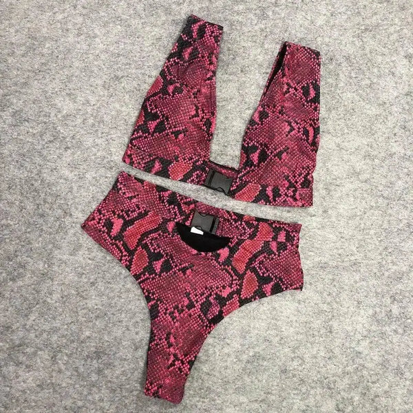 Bikini európai és amerikai fürdőruha Kígyó nyomtatás magas derékrész