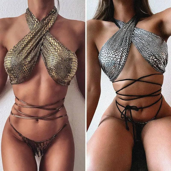 Bikini bikini bikini forró stílus kígyó nyomtatás szövet pántos