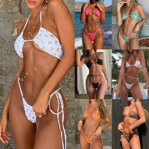 Bikini Szín Osztott Bikini Strand Vakáció Hátnélküli Bikini