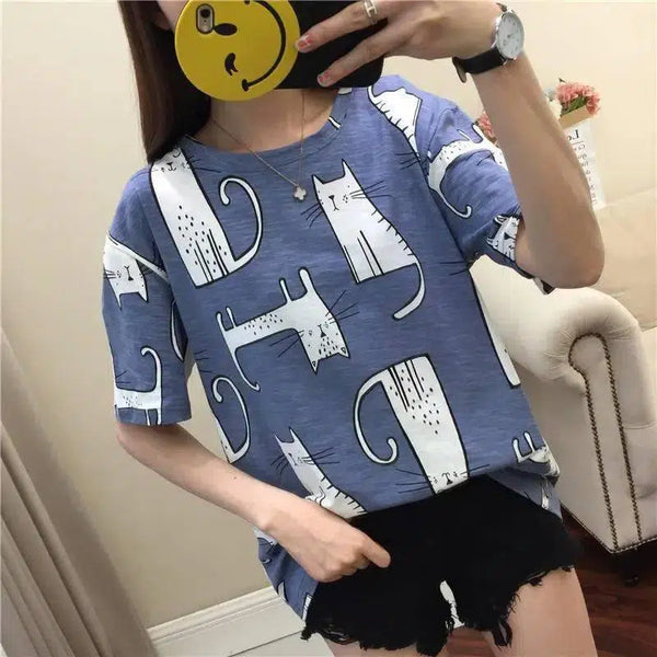 Macska nyomtatás rövid ujjú póló Piros Student Base felső