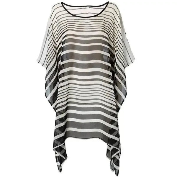 Termékleírás: Sifon fekete-fehér csíkos laza strandszoknya bikini