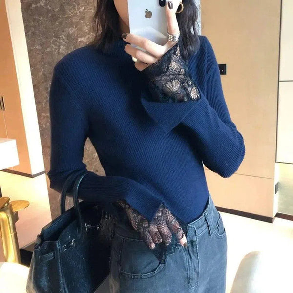 Csipke mandzsettás bordázott garbó pulóver