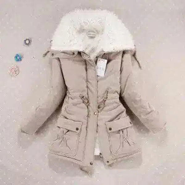 - Nyakvonal: Magas gallér műszőrme díszítéssel