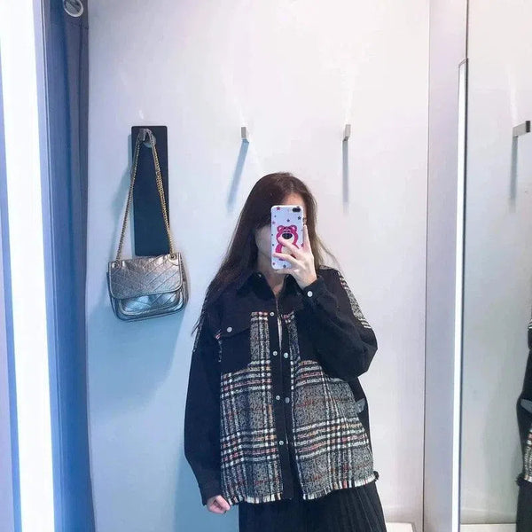 Női tweed panel kabát szegecses részletekkel