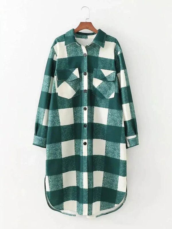 - Design részletek: Merész zöld és fehér kockás minta, két mellzseb patentokkal, gombos elülső zárás