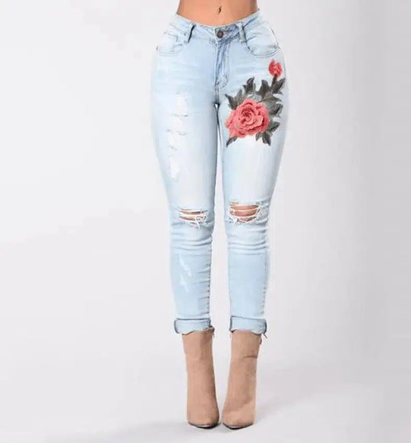 Divat Hole hímzett magas elasztikus farmer női nadrágok