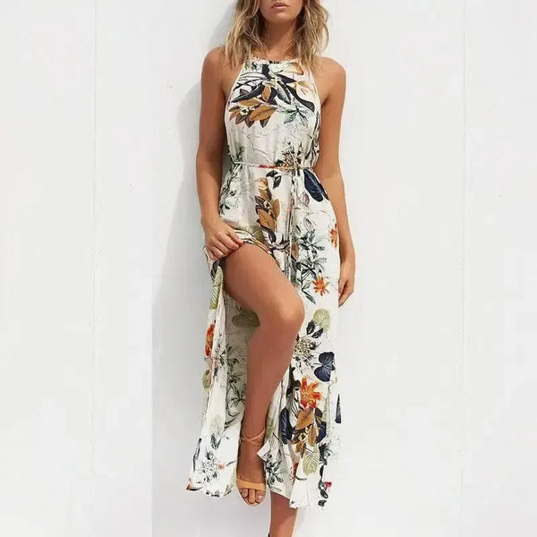 Európai és amerikai sling pamut nyomtatott hosszú strandruha