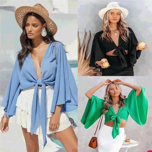 Női nyakkendős Crop Top széles ujjakkal
