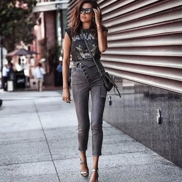 Gombos mandzsettás magasított farmer