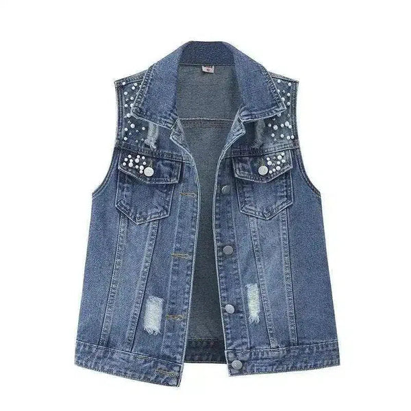 - Klasszikus egy csavarral: Ez a farmer mellény egyedi, sérült részletekkel rendelkezik, amelyek egy csipetnyi robusztus bájt kölcsönöznek.