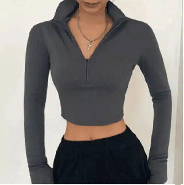 Női cipzáras crop kapucnis hosszú ujjú pulóver