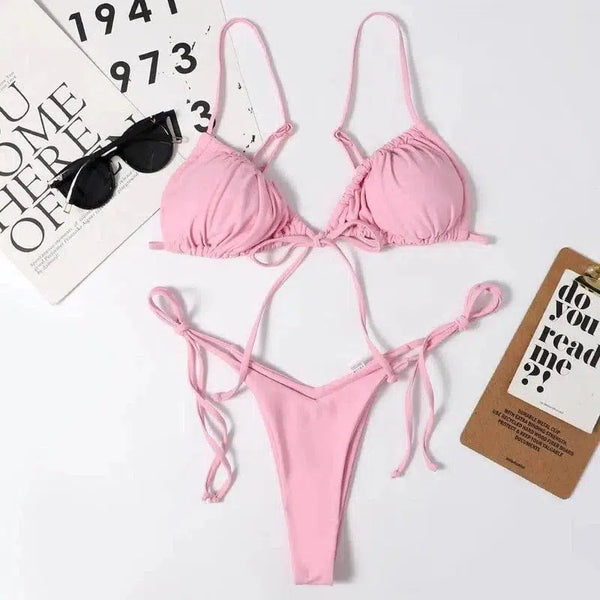 Női fürdőruha egyszínű osztott húzózsinóros tanga