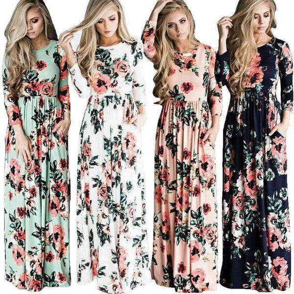 Hosszú ujjú nyomtatott virágos ruha