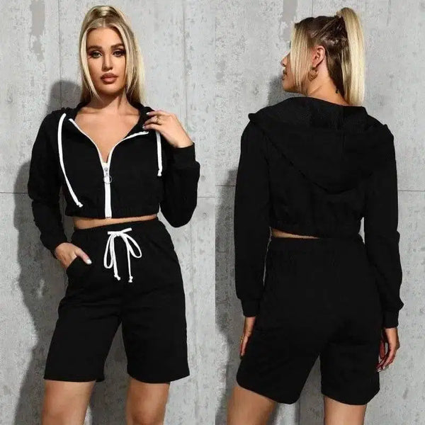 - Ruházat típusa: Rövidre szabott kapucnis pulóver és rövidnadrág szett