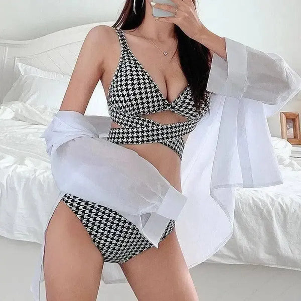 Termékleírás: Houndstooth keresztbe kötött fürdőruha bikini