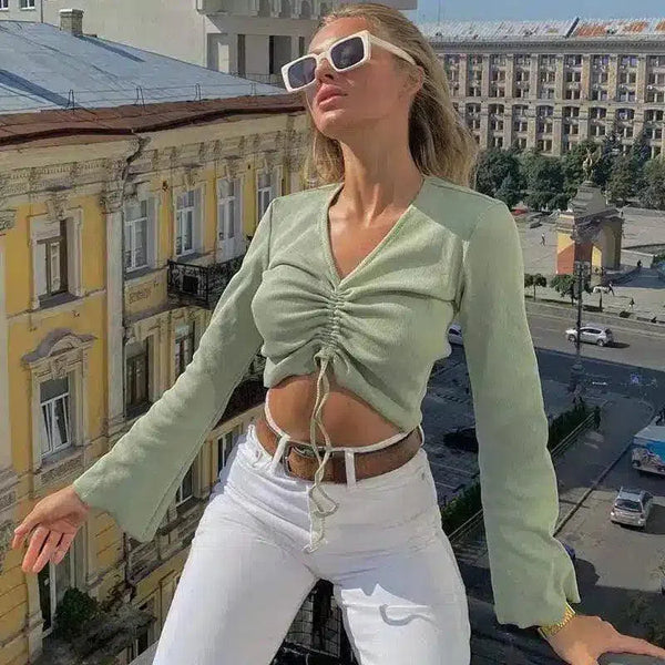 - Egyszerű szabás: A felső kivágott szabása kiemeli a derekat, és zökkenőmentesen párosítható magas derekú farmerrel vagy szoknyával az elegáns, modern megjelenés érdekében.