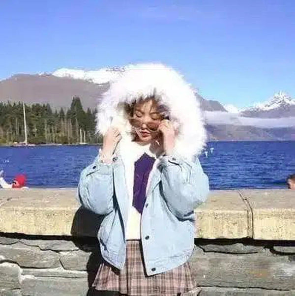 Kapucnis és bársony bárány farmer dzseki