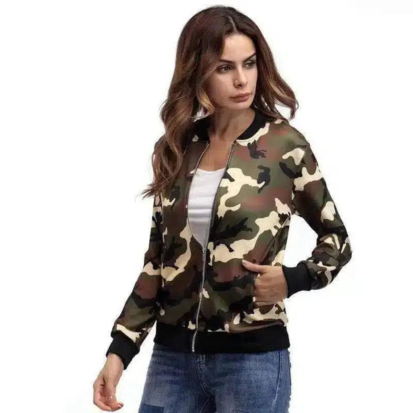 Női Camo nyomtatott alkalmi cipzáras dzseki
