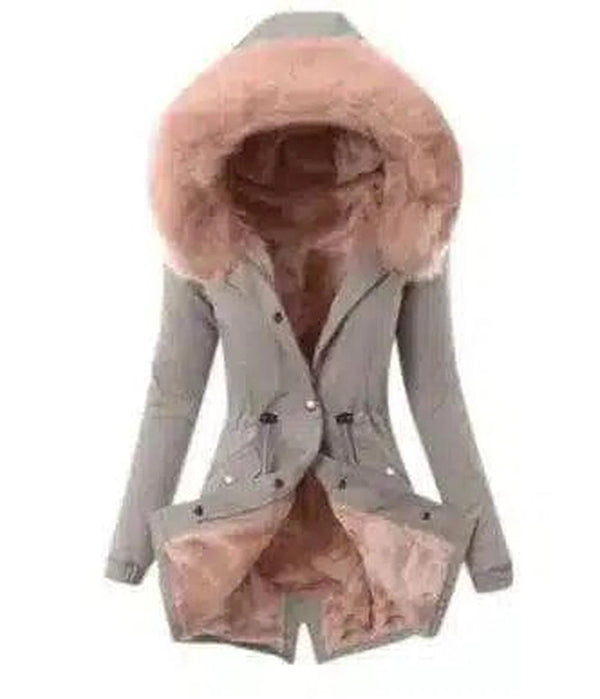 - Nyakvonal/vállvonal stílus: Kapucnis kialakítás műszőrme szegéllyel