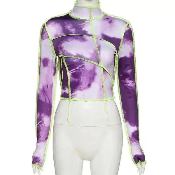 - Design: Szemet gyönyörködtető tie-dye minta lila színben, kontrasztos szegéllyel