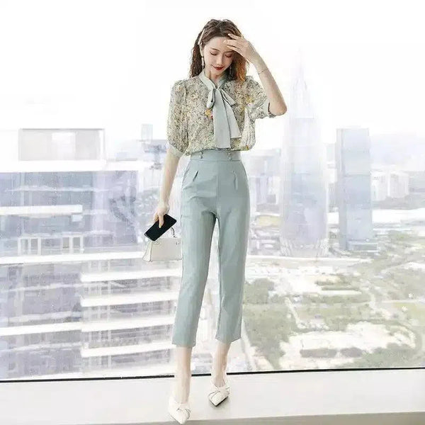 Női Elegáns nyakkendős blúz és rövidnadrág