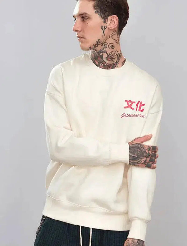 Kínai karakter nyomtatott kerek nyakú pulóver
