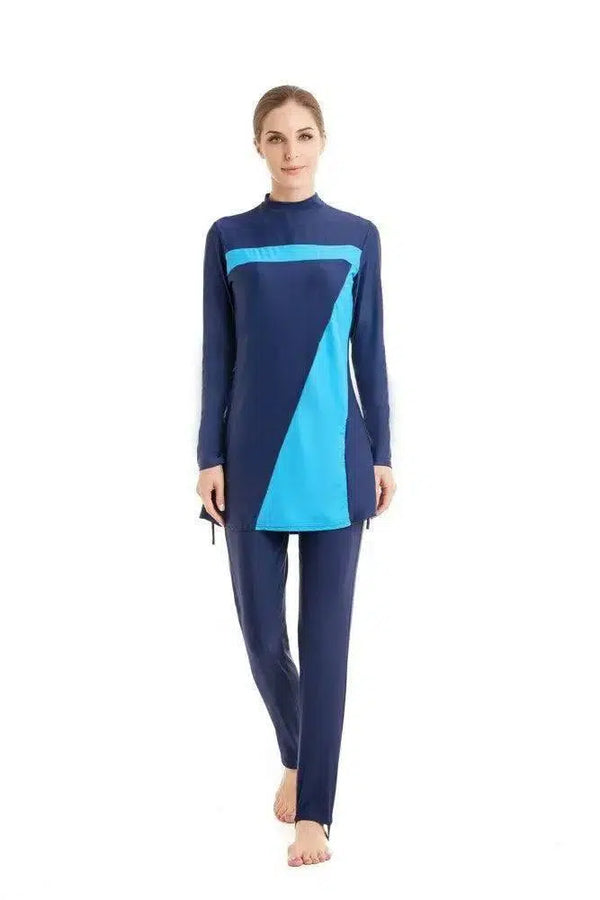 - Kialakítás: Konzervatív szabás a szerény fedettségért