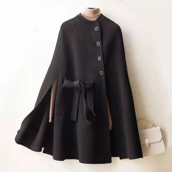Téli köpeny kabát csokornyakkendővel és gombos záródással