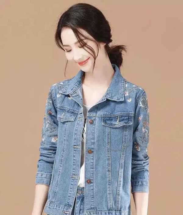 - Detailozás: Virágos hímzés az ujjakon és a mellkason