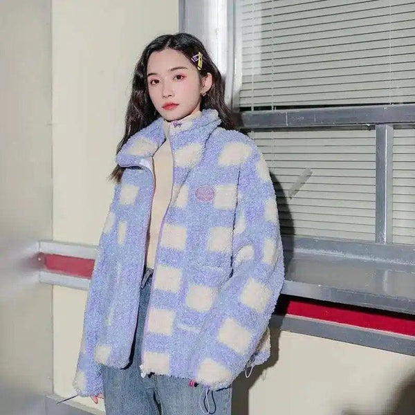 Női Faux báránybársony meleg gyapjú kockás kabát
