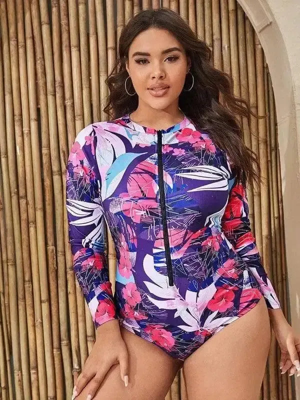Termékleírás: Női Plus Size egyrészes fürdőruha, hosszú ujjú nyomtatott