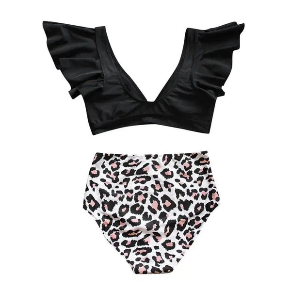 Leopárd mintás fürdőruha osztott magas derekú kétrészes szett