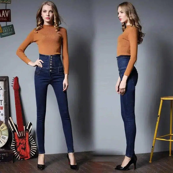 magas derekú farmer női vékony elasztikus lábak ceruzanadrág